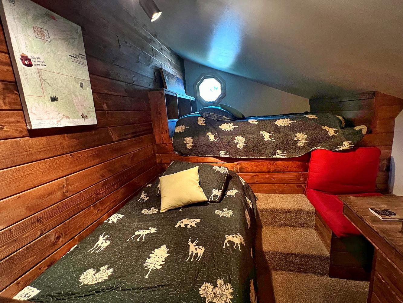 Town View with queen bed and private bathroom with a loft of 1 twin bed and 1 full bed. $125 per night plus tax/fees up to double occupancy - $25 per person per night plus tax/fees – Max occupancy is 5